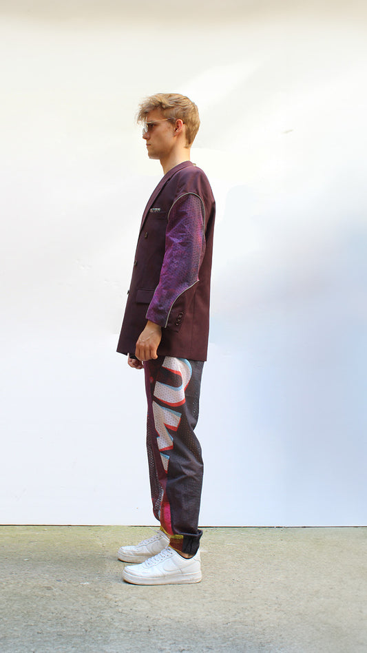 Upcycled blazer with banner detail