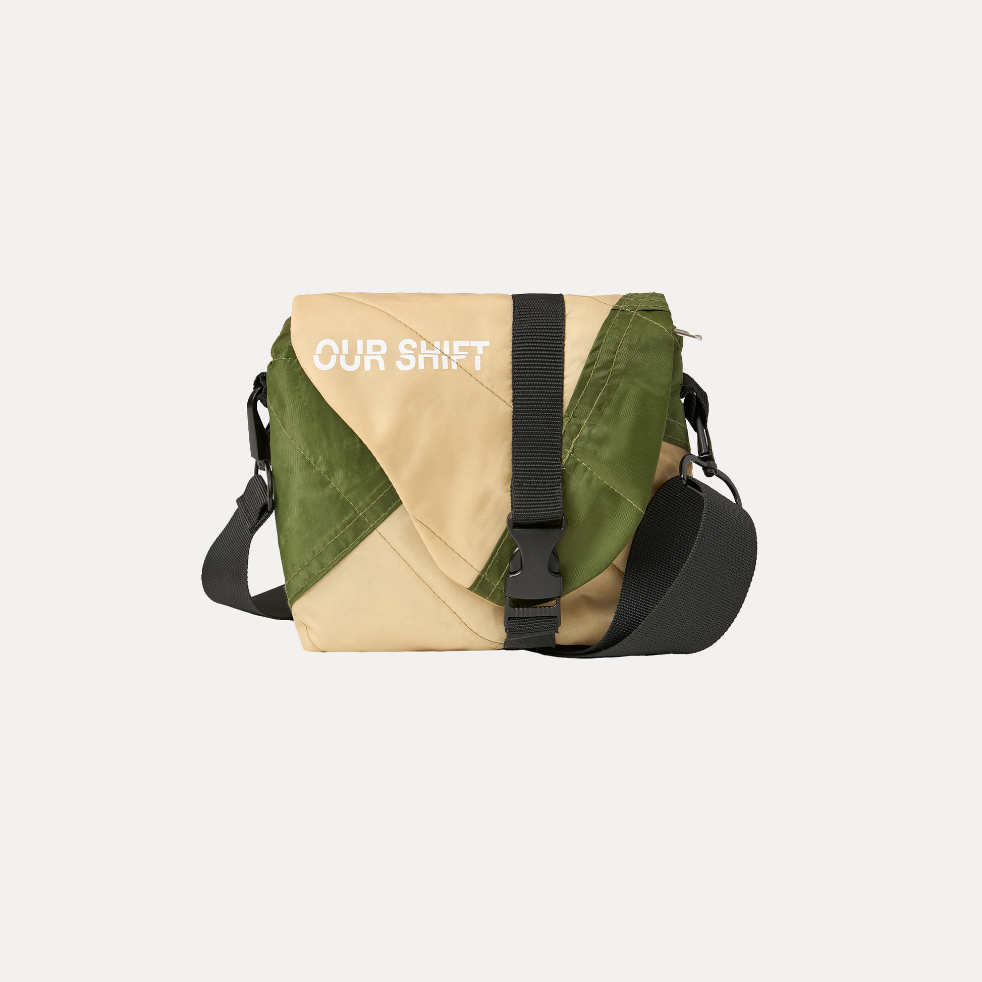 Keep your essentials close and secure with this compact crossbody bag, crafted from upcycled tents. Designed for music festivals and everyday adventures, it features a zippered compartment and an additional flap for extra security, making it perfect for carrying your phone, wallet, and even a can of your favorite drink.