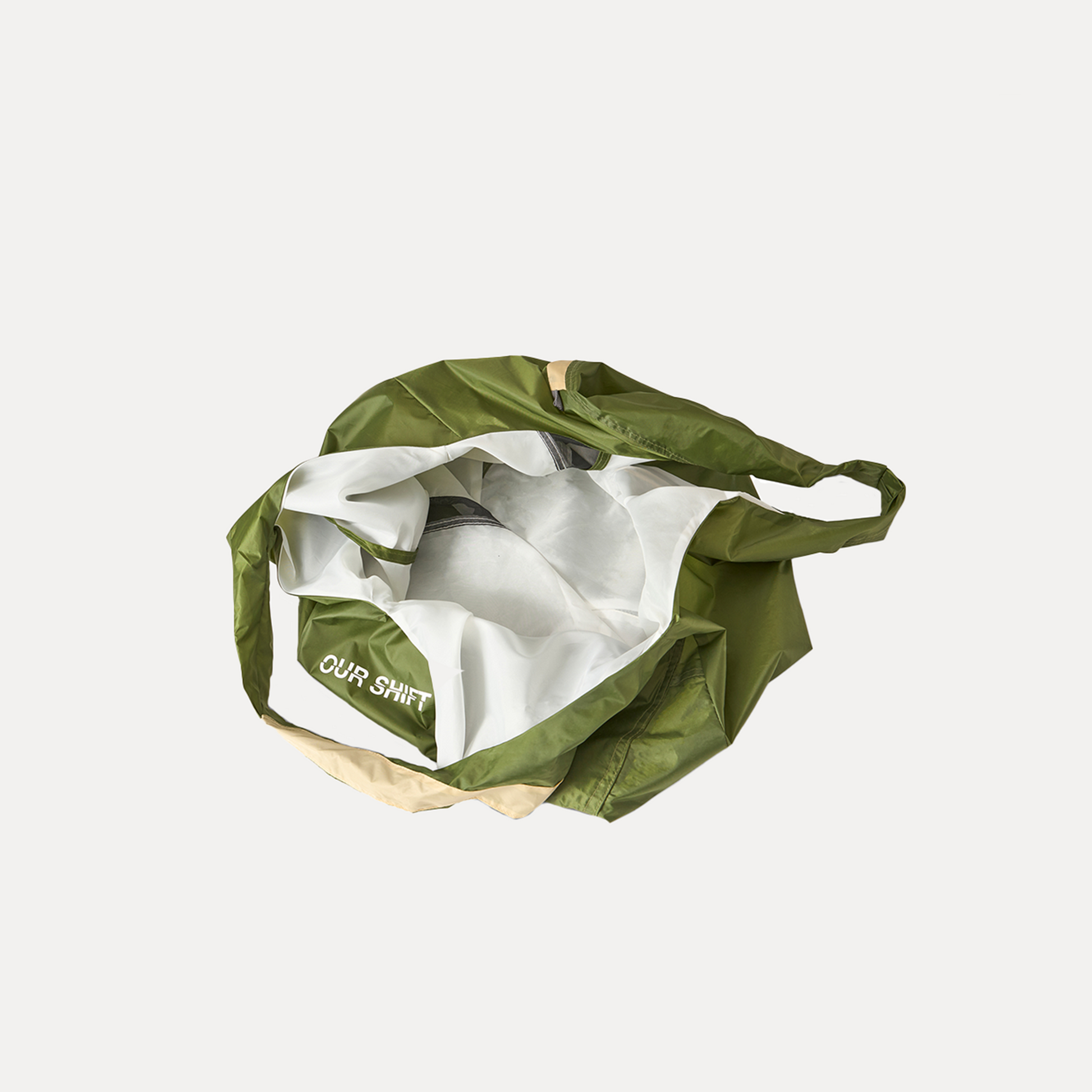 Carry sustainability in style with this versatile bag crafted from upcycled tents. Spacious yet ergonomic, it features a single compartment that's perfect for everything from grocery shopping to storing your personal belongings, making it an ideal everyday companion.