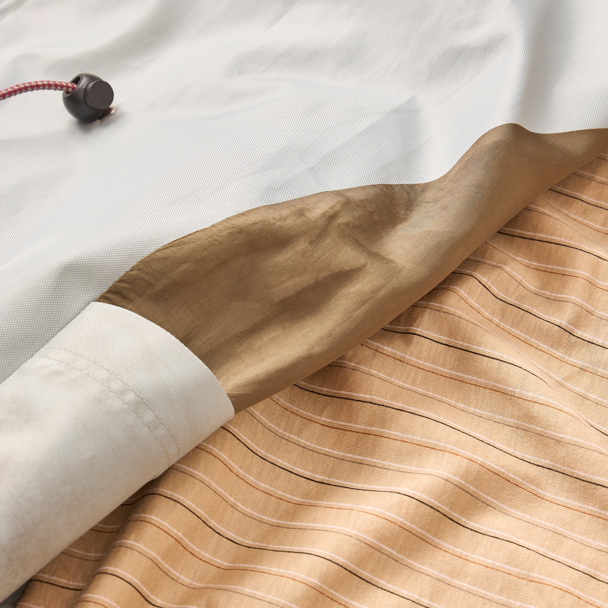 The coat for those who dare to stand out. Made from heavy-duty party tents, the coat carries a raw, unconventional character with subtle imperfections that tell its upcycled story.