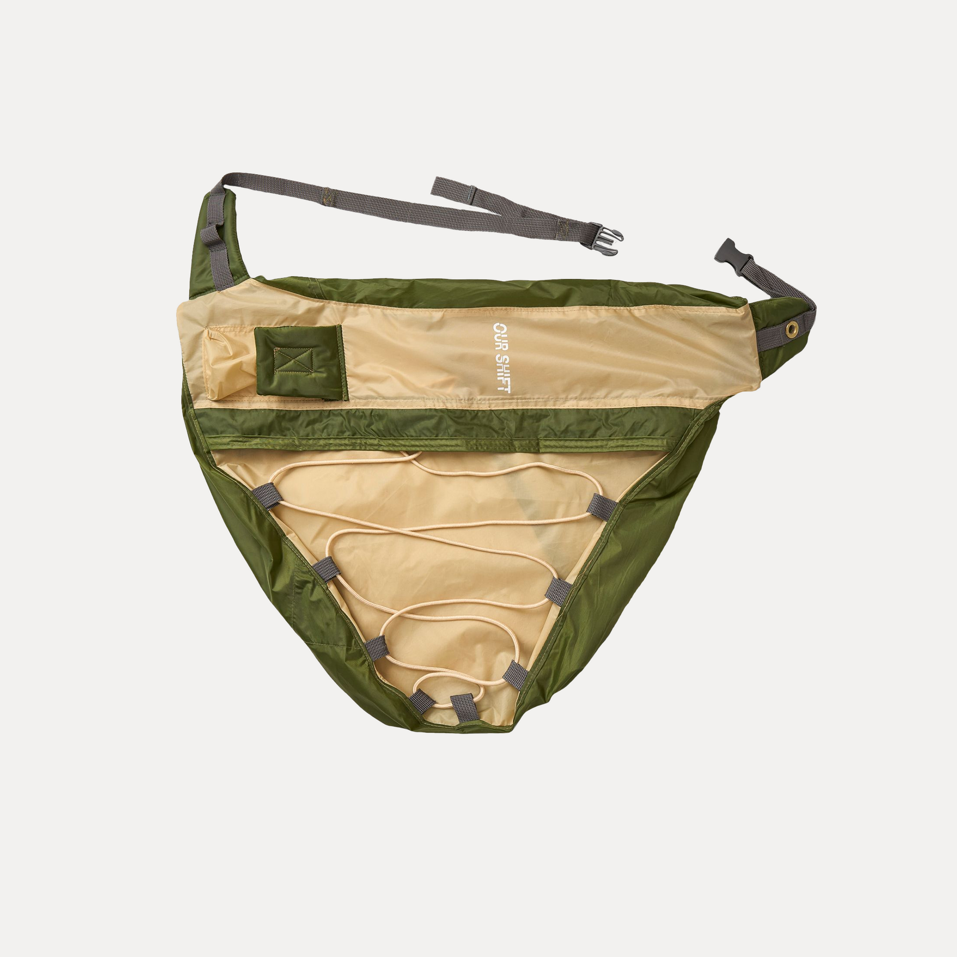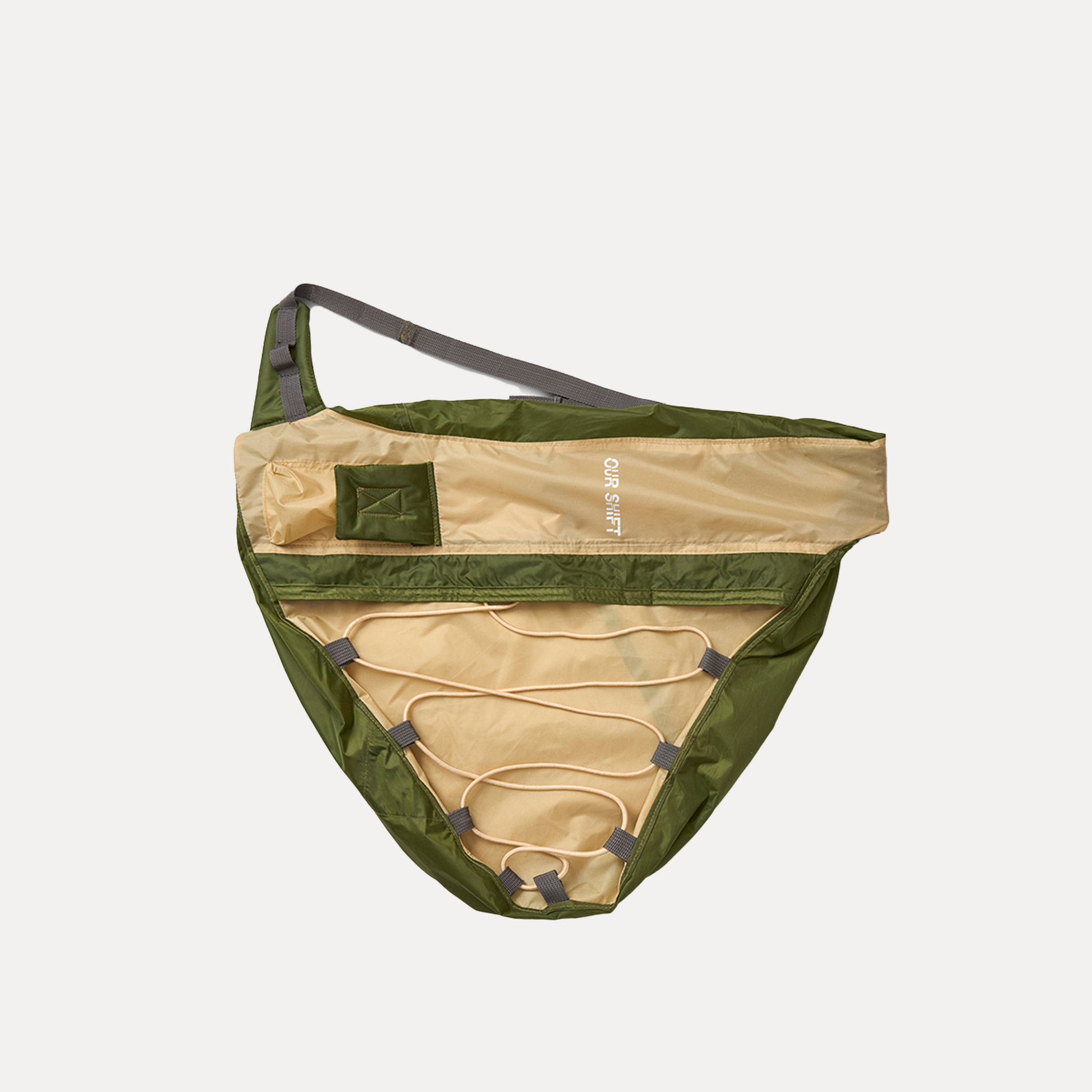 Effortlessly functional and sustainably crafted, this over-the-shoulder bag is made from upcycled tents for durability and style. Featuring a spacious main compartment with a dedicated open laptop sleeve, a secure zipper closure, and a rope mesh for attaching extra items, it’s designed for both convenience and versatility. An external small pocket adds quick access to essentials, making it the perfect companion for work, travel, or everyday adventures.