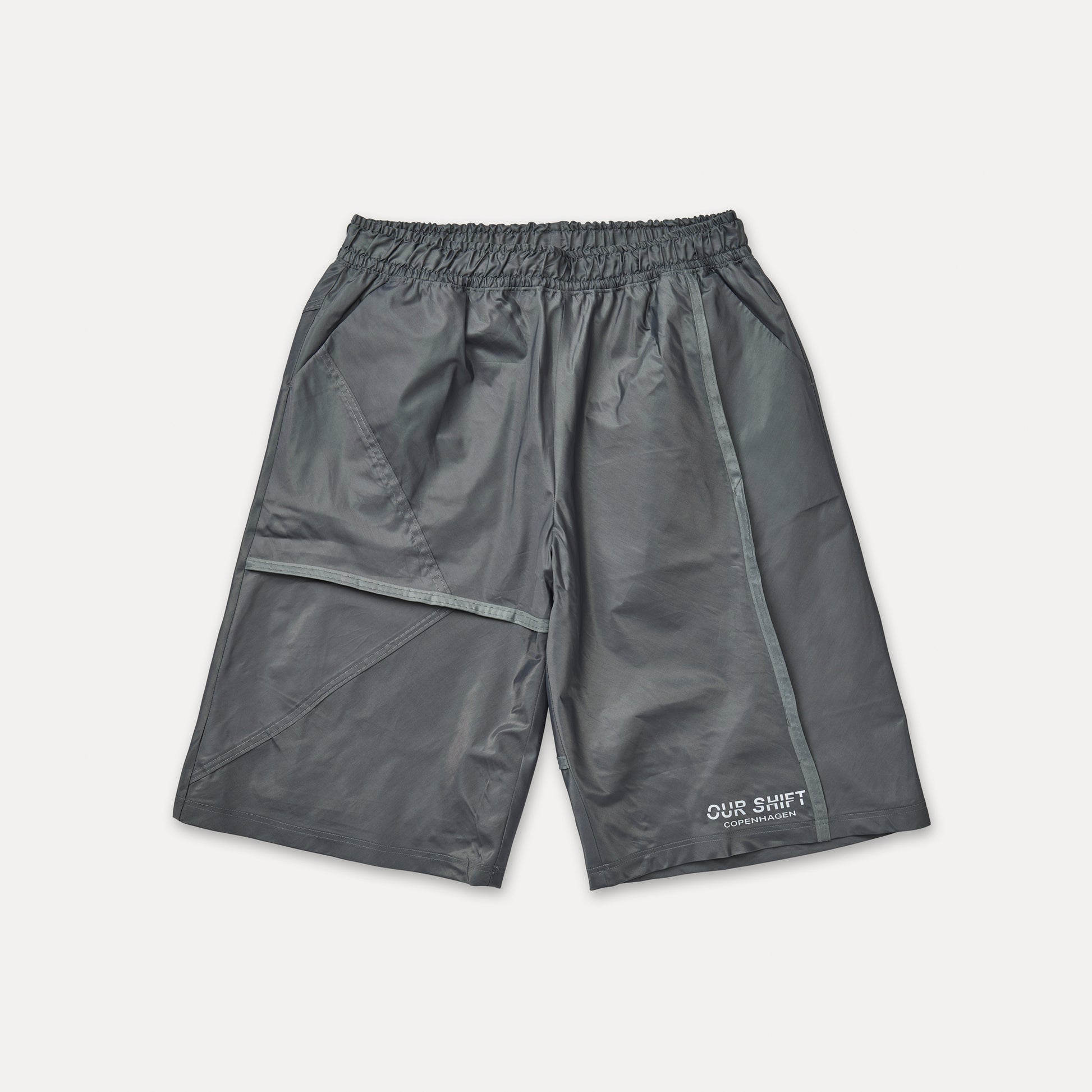 A refined take on the classic athletic short. The Our Shift Monochromatic Shell Shorts feature a clean, minimalist design that focuses on texture and subtle detailing. Rendered in a versatile dark charcoal gray, these shorts offer effortless style that pairs with anything. The lightweight, slightly crinkled shell fabric moves with you, providing all-day comfort whether you're relaxing or on the move. Technical paneling across the thigh adds structure and a modern, high-fashion edge to this highly wearable piece.