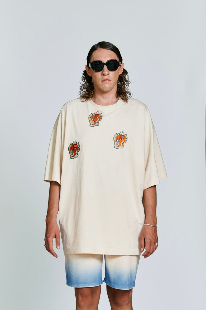 T-shirt Burning fist in beige.