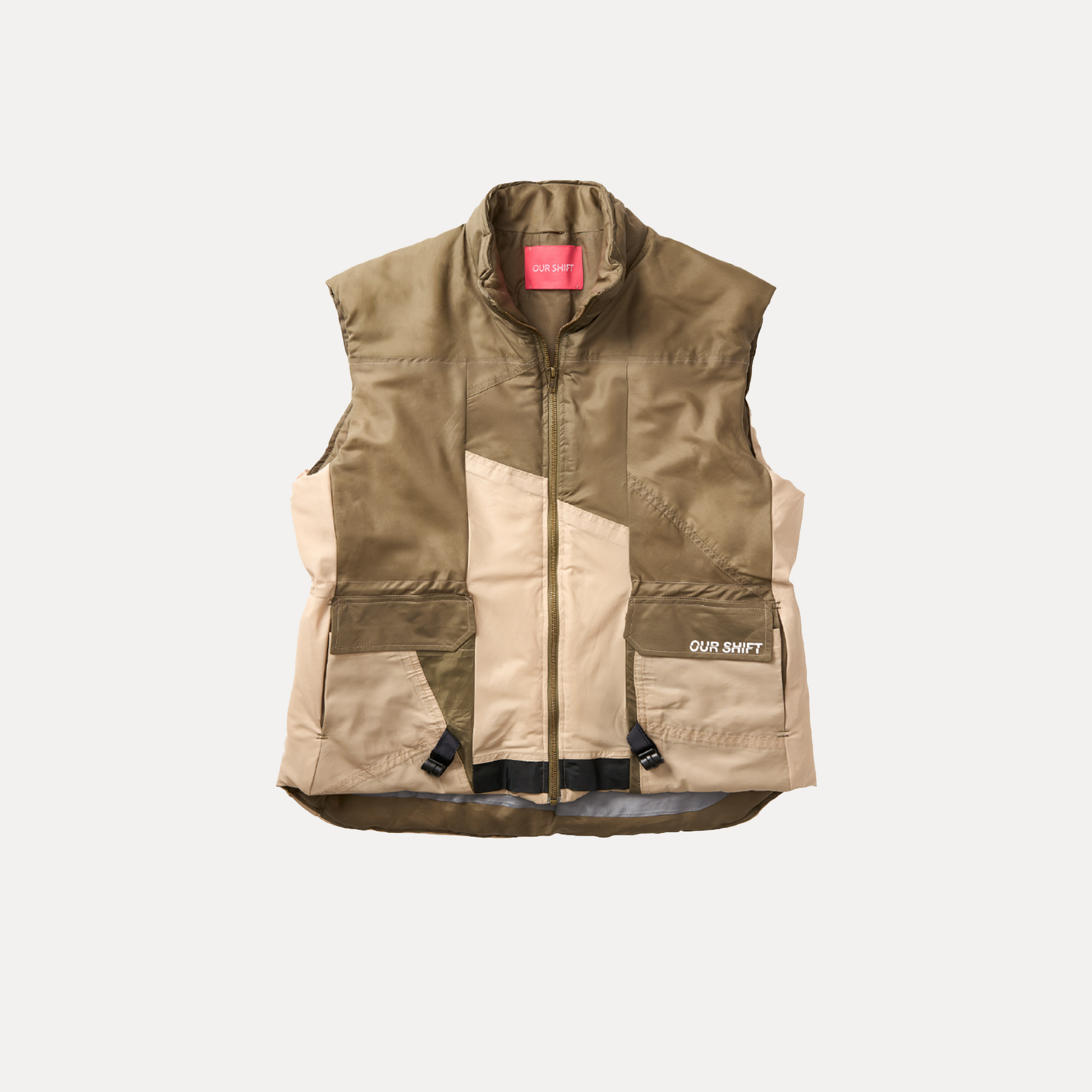 A vest that invites you to embrace the art of sustainable living, offering a bold, modern approach to ethical fashion that is as enduring as it is innovative.